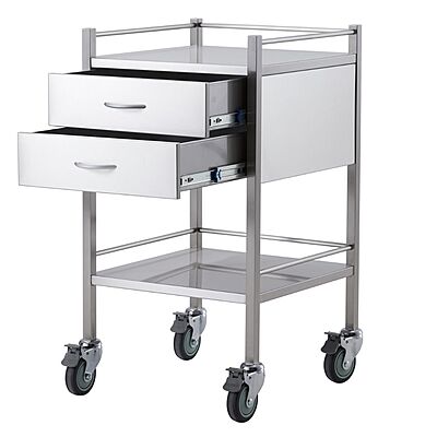 Pacific Medical Stainless Steel Trolley Single 2 Drawer