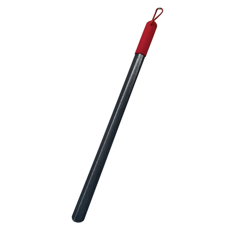 Long handled steel shoe horn. Made from enamelled steel with a non-slip rubber handle.