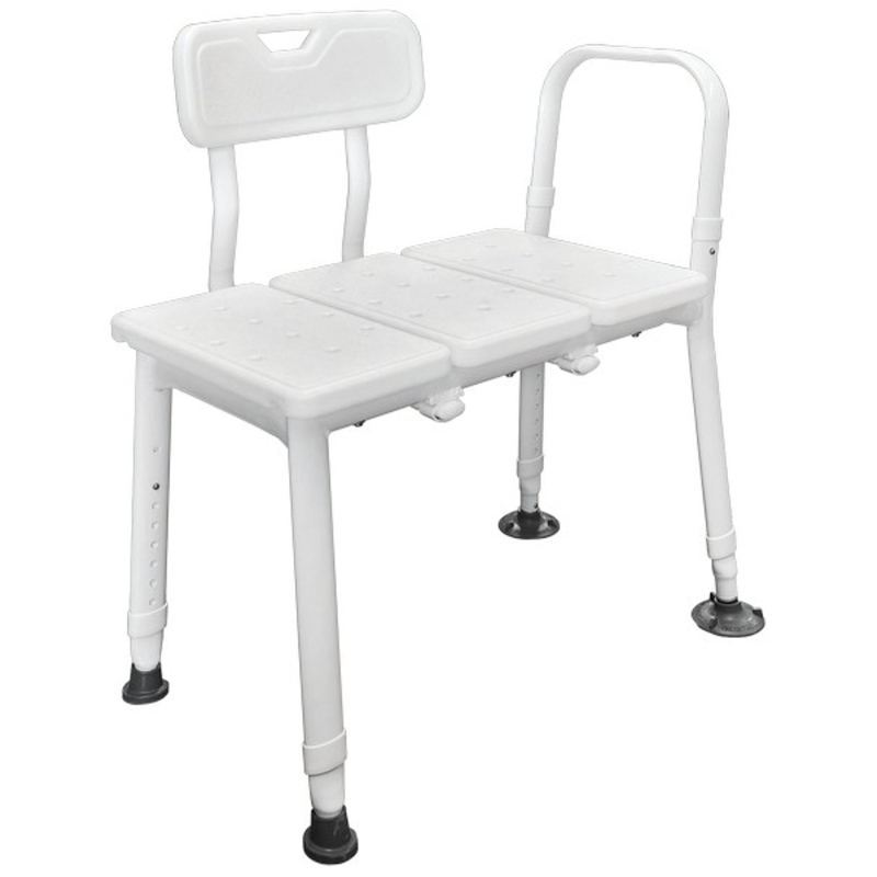 Transfer Bath Benches are designed to assist the user get into and out of the bathtub, it provides a sturdy base to sit on before sliding into position. The bench has a longer board that extends over the bath rim. Two suction feet are set inside of the bath and two legs placed outside.
