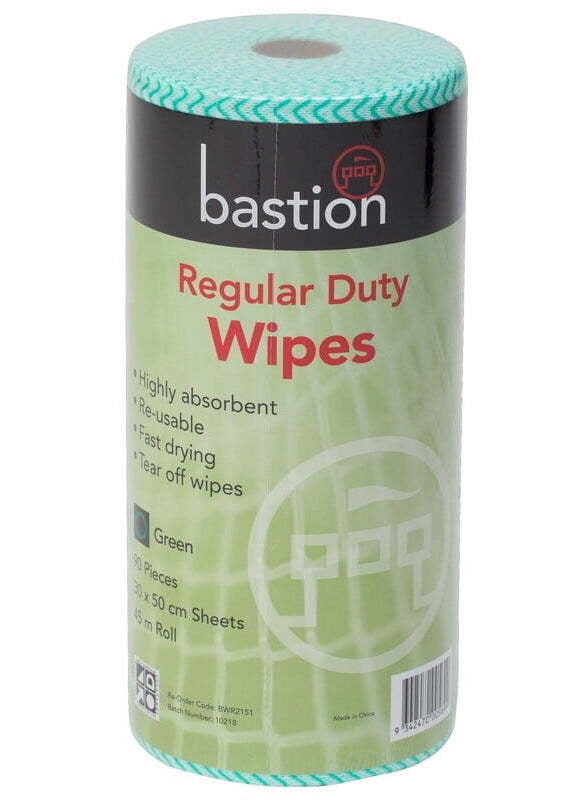 Bastion Regular Duty Wipes 45m Roll 90 Pieces 30x50cm Green Carton of 6 Rolls