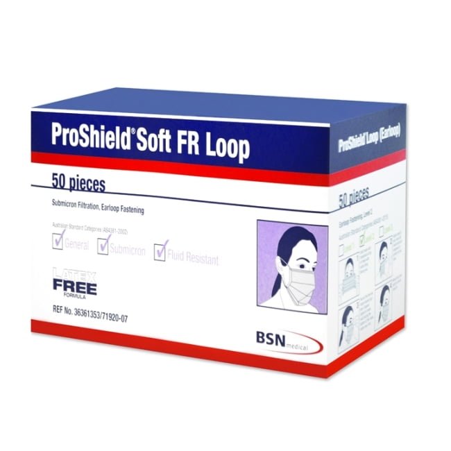 The ProShield Soft FR Loop mask is suitable for clinicians during surgical procedures, general and allied health (dental) environments including those procedures where there is a risk of exposure to body and blood fluids.
