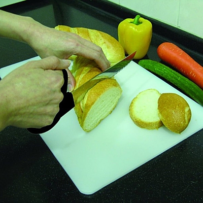An ergonomic, easy to grip, closed handle knife with a serrated stainless steel blade