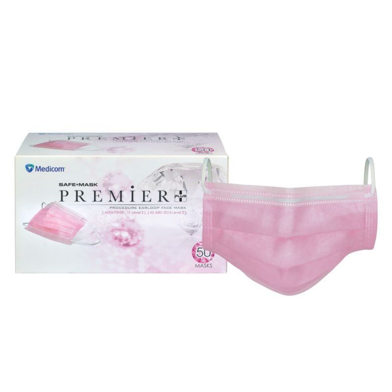 Medicom SafeMask Premier Plus Earloop Masks AS 4381 Level 2 Pink Box Of 50