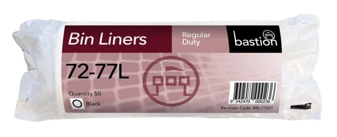 Bastion 72-77 Litre Regular Duty Bin Liners Black Carton of 500 / 10 Rolls of 50