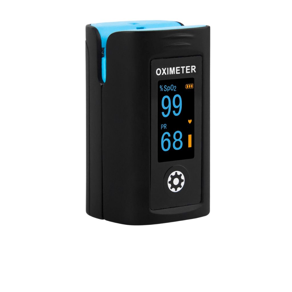 - OLED display of SpO2, PR, PI, pulse bar & waveform