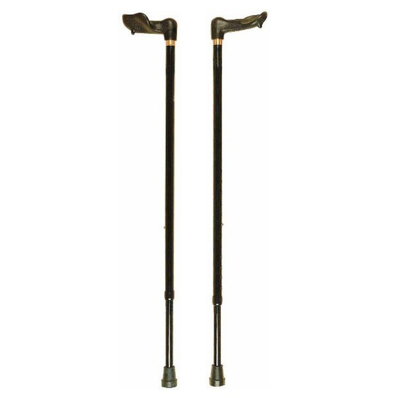 The Large Orthopaedic Palm Handle Cane has a moulded plastic handgrip that conforms to the shape of your hand, evenly spreading pressure across the palm. These canes are available in Black or Bronze and are specific to the Left or Right hand.