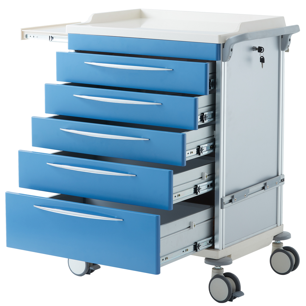 Pacific Medical Anesthesia Medical Trolley 5 Drawer Blue