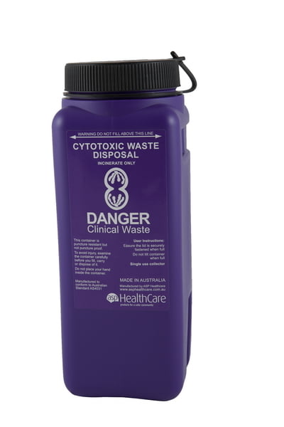 - Compact high quality all-purpose blow moulded disposal container & injection moulded lid with standard warning label