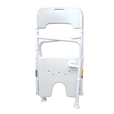 Designed to be placed in the shower (or bath) to provide safety and comfort while showering. Easily folds for convenient storage; easy to bring along on trips.