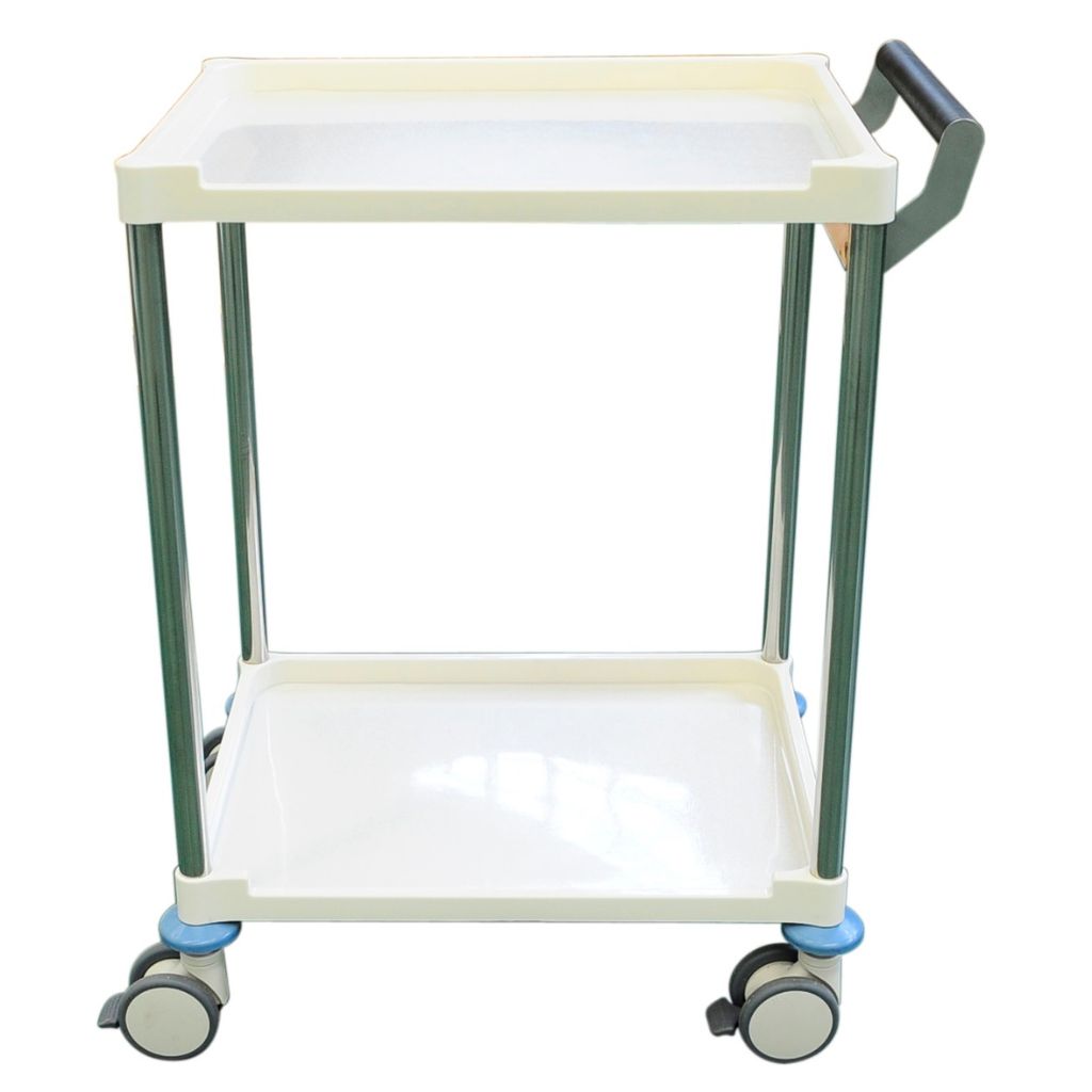A strong ABS instrument trolley for transport of goods and equipment throughout healthcare facilities.