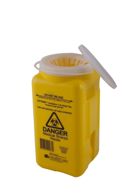 FITTANK Sharps Container Yellow 1.4 Litre Resealable Snap Top