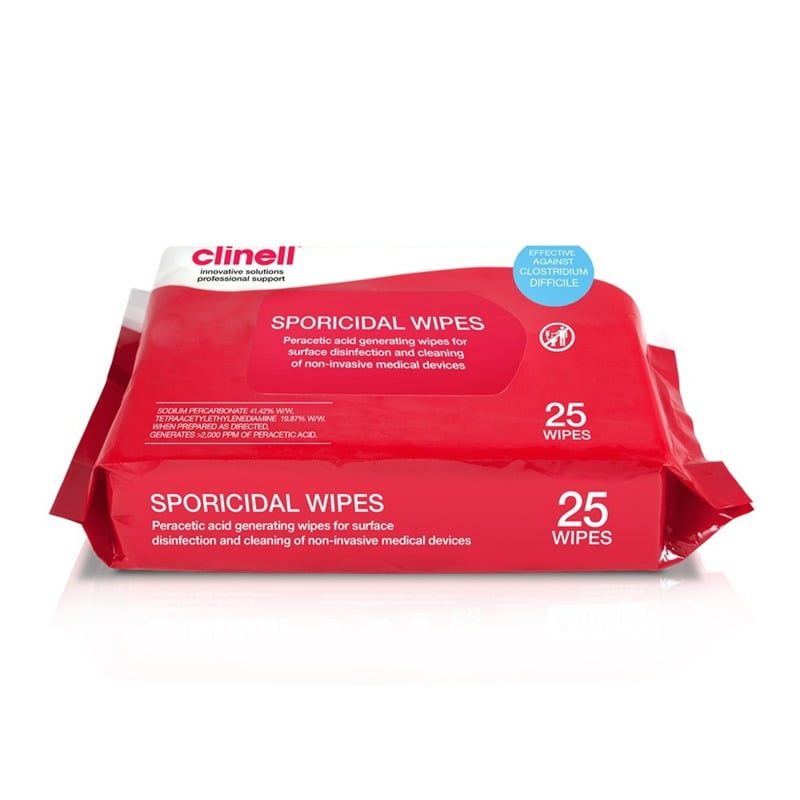 Clinell Sporicidal Wipes are peracetic acid generating disinfectant wipes, activated by water, for surface disinfection and cleaning of non-invasive medical devices. Incredibly powerful, yet kind to surfaces, Clinell Sporicidal Wipes clean and disinfect and work in both clean and dirty conditions.