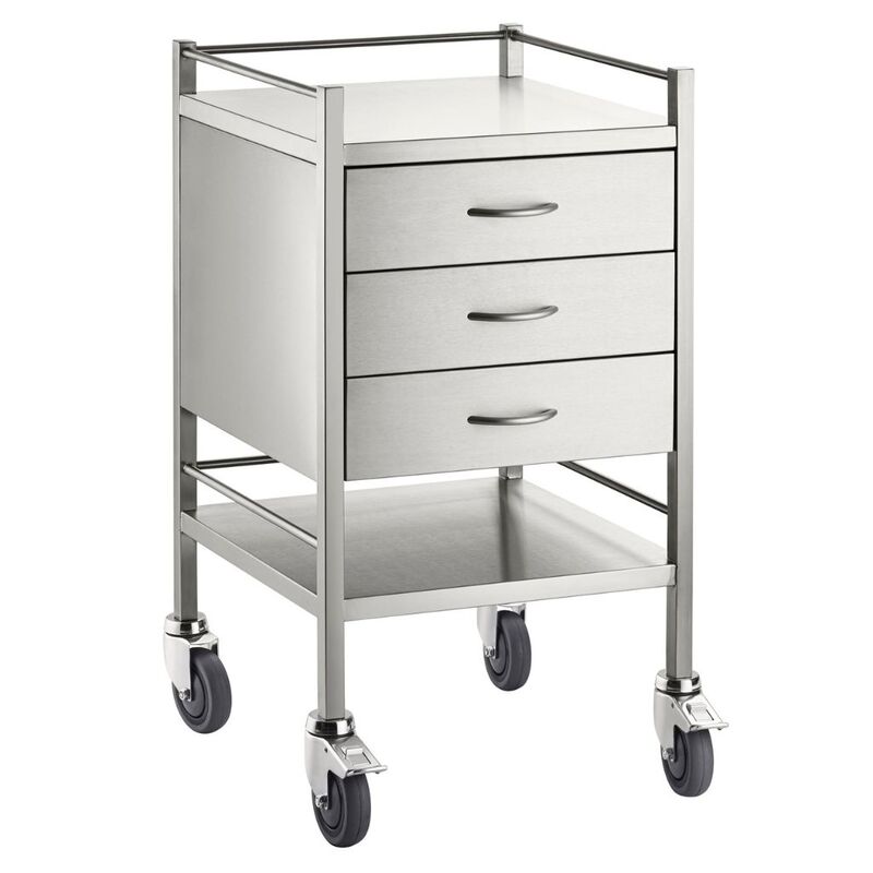 Pacific Medical Stainless Steel Trolley Single 3 Drawer