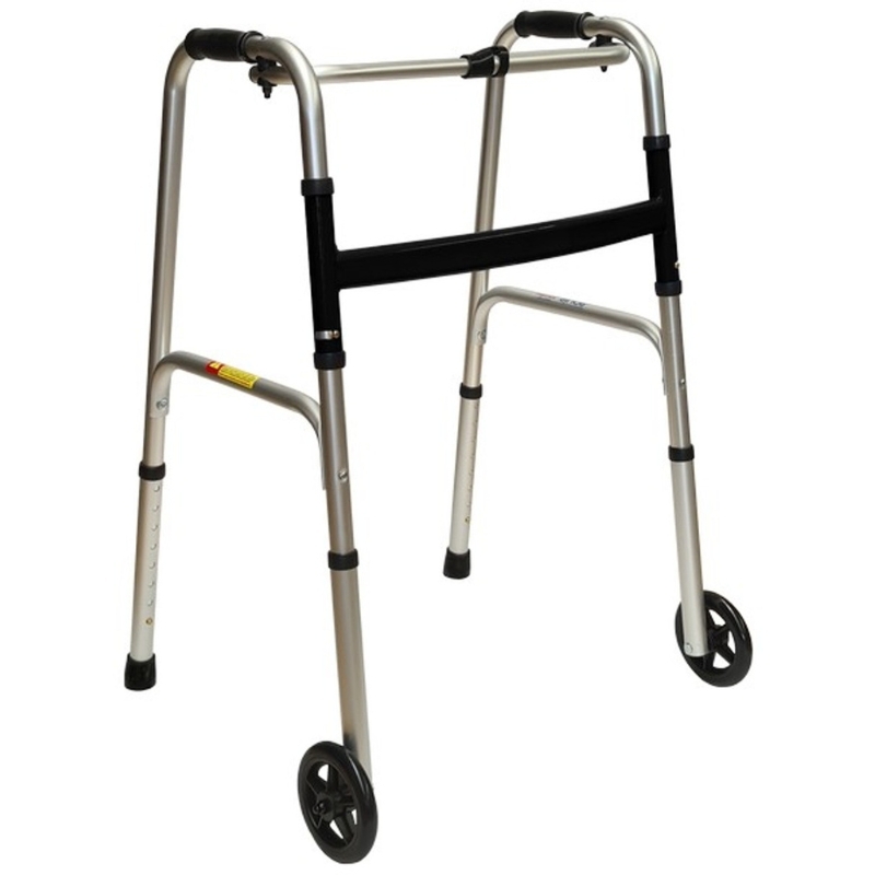 PQUIP Aluminium 1 Button Folding Walking Frame With 5" Castors Black RWK103BL