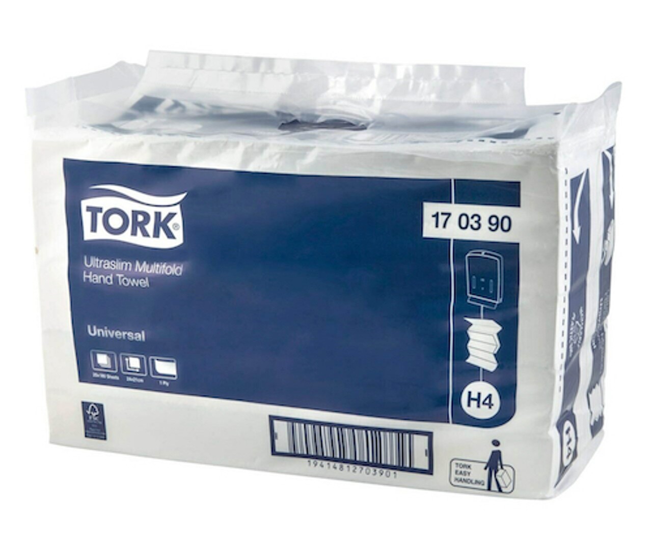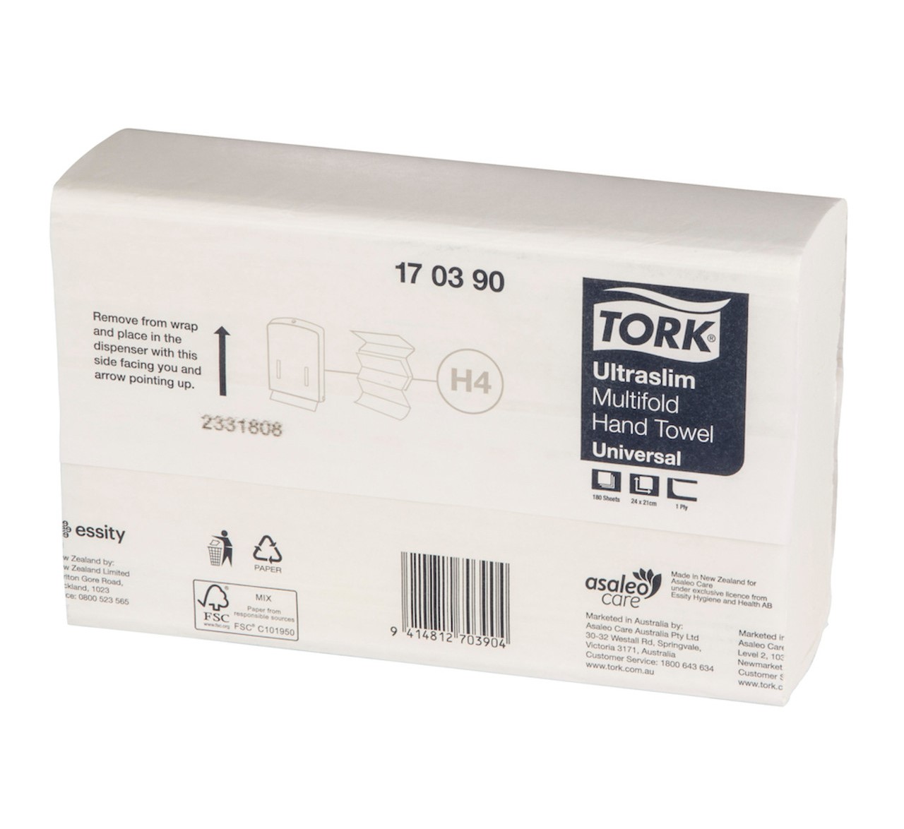 Tork Ultraslim Multifold Hand Towel Universal White 1 Ply 180 Sheets 20 Packs per Carton
